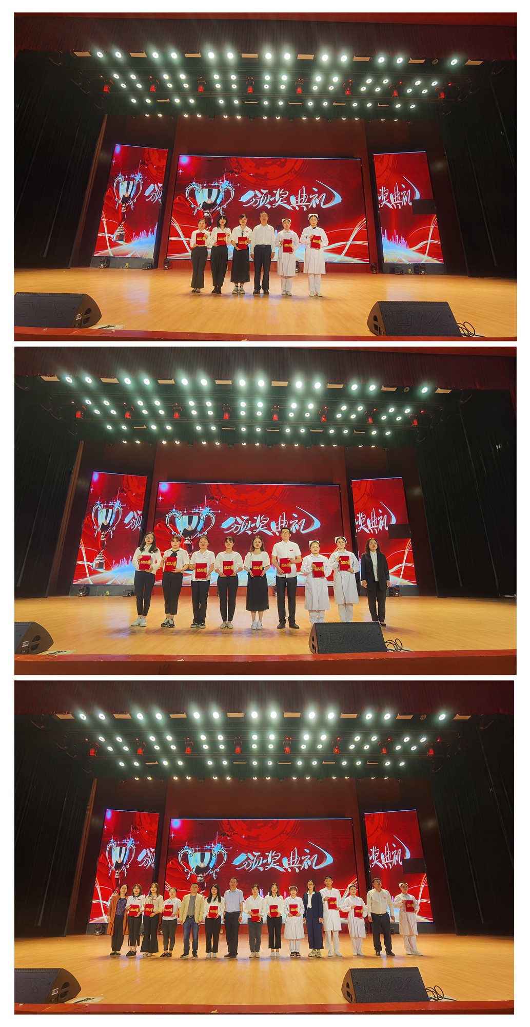随后大会进入到表彰和颁奖环节,由出席的学院和系部领导为护理系荣获教师教学能力比赛、学生护理技能大赛等赛事奖项的师生依次进行颁奖。