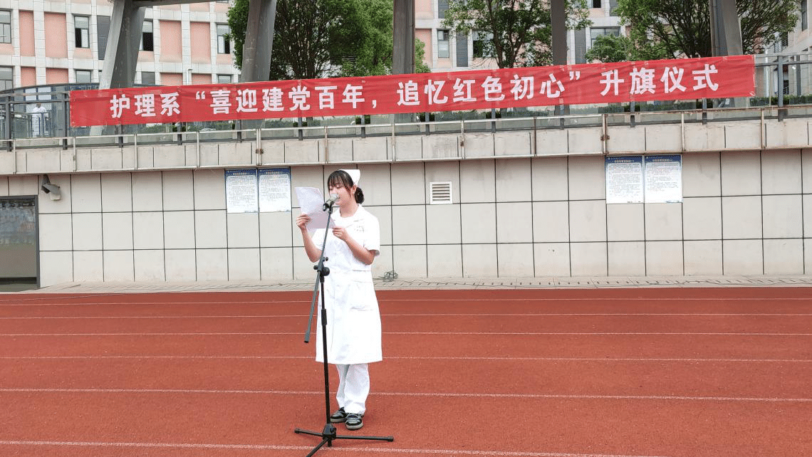 最后,护理系副主任黄文沛作国旗下讲话,他带领师生们共同回顾了党的辉煌历史,并指出,今天大家沐浴着党的光辉,感受着党的温暖,要用履职担当让爱和责任不断传递,梦寻未来,踏浪而行,立志做堪当民族大任的一代新人。