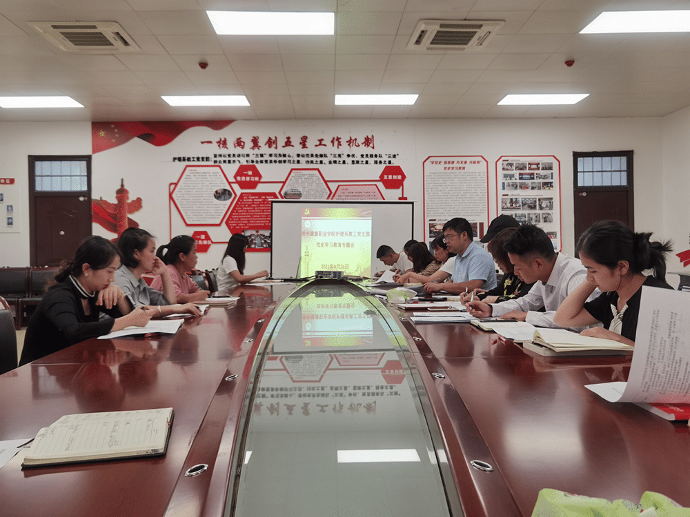 8月26日下午,护理系教工党支部在护理系党员活动室召开党史学习教育专题会,护理系全体党员参会。