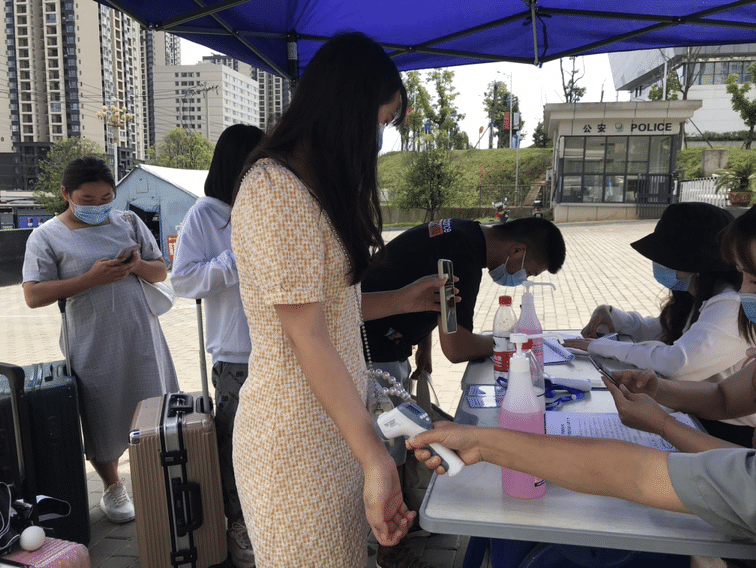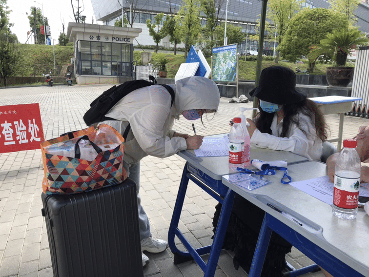 学生返校时,必须全程佩戴口罩,做好健康监测,学生到校门后由老师查验身份信息,查看健康码、行程卡和48小时内核酸检测报告,进行体温监测,所有信息查验后方可入校。防疫期间学生宿舍楼实行疫情防控管理,做好消毒通风和清洁卫生,保证达到疫情防控要求。
