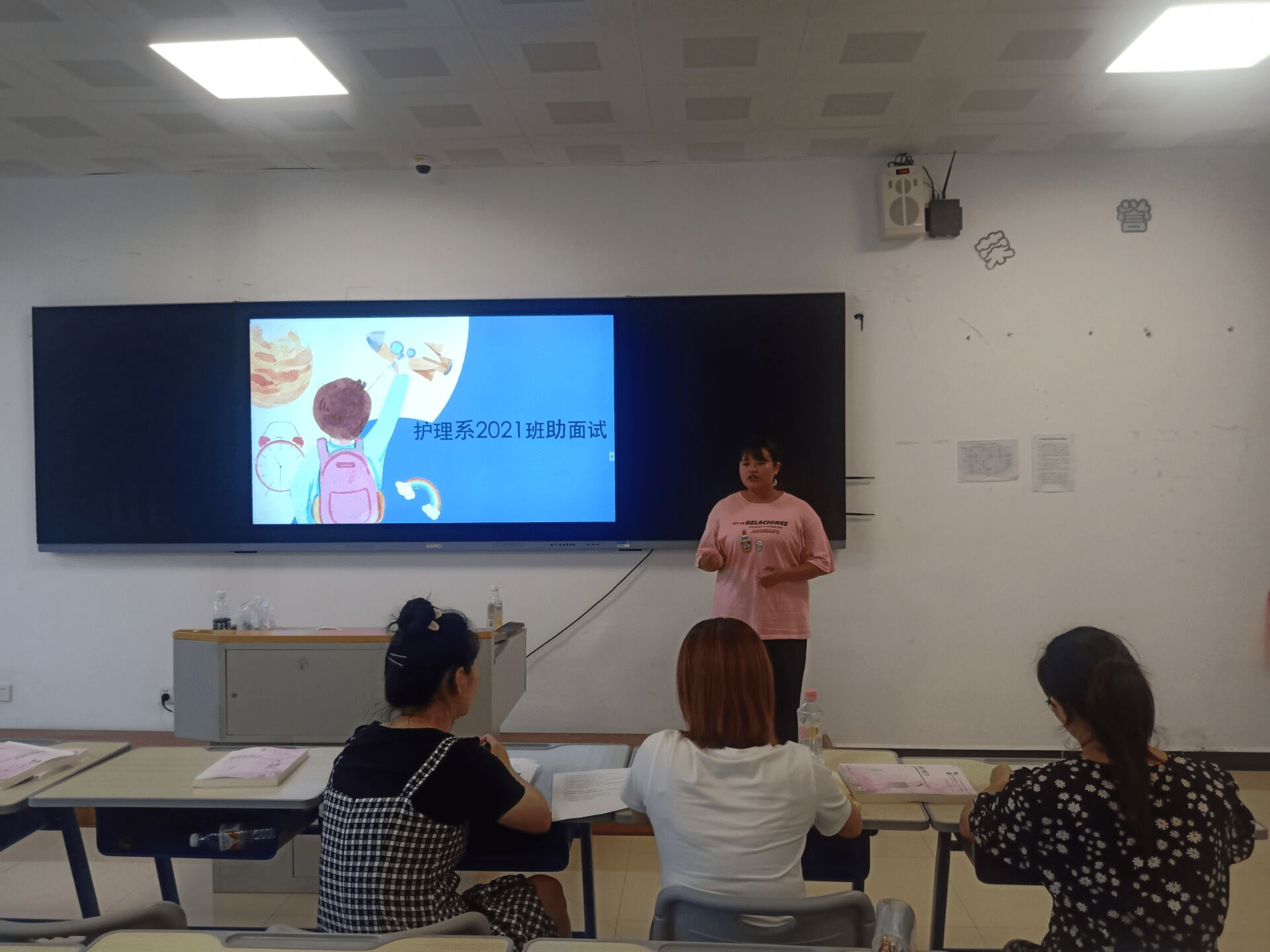 为做好护理系2021级新生的教育管理工作,加强新生入学的适应性教育,帮助新生尽快融入大学生活和学习环境,协助辅导员处理班级事务,护理系21级班助选拔工作拉开序幕。8月31日下午18:30,护理系在8-2-201、8-2-202、8-2-203教室举行了选举活动,共计99名同学参加面试,由系学生科老师担任面试评委。