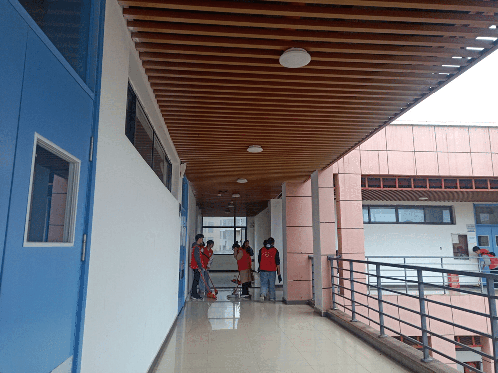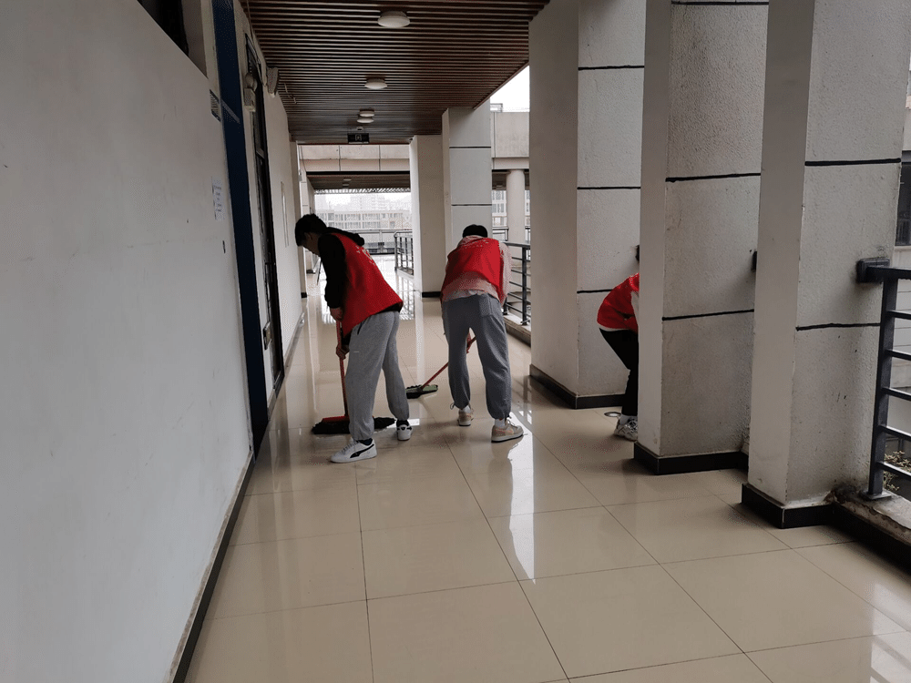 活动前,护理系青年协会各负责人组织志愿者在实训楼前面的空地集合,清点各小组的成员,严格遵守学校疫情防控制度,明确了各小组的分工。各小组在老师的带领下积极的参与打扫教室卫生及走廊卫生。在活动中每位同学都很积极认真的打扫,体现了当代青年大学生热爱劳动,不怕累、不怕苦的精神。活动进行了三个多小时,最终完美的完成了任务。