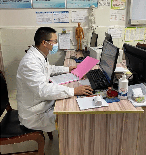 图三:教务科老师在环北社区卫生服务中心查看实践锻炼教师工作情况