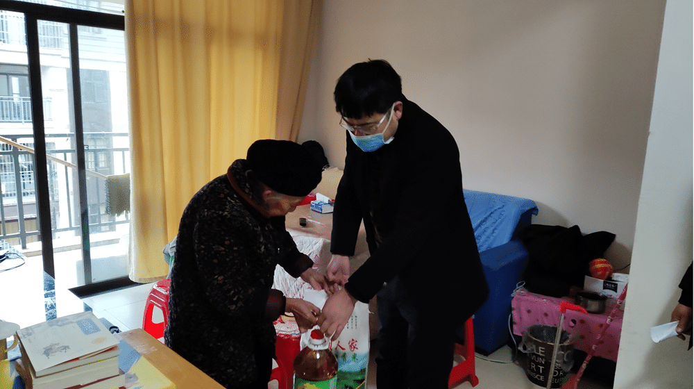 会后,支部党员前往联建社区慰问结对帮扶贫困家庭、开展健康监测、健康指导。