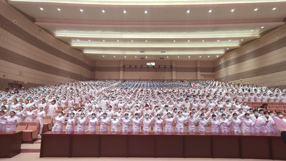 “终身纯洁,忠贞职守,尽力提高护理之标准…”,全体1000余名护生身着洁白的护士服,手执红烛,肃然起立,举起右手,庄严宣誓。“慎守病人家务及秘密,竭诚协助医生之诊治,务谋病者之福利…”这凝练了生命曙光的言语,这绽放护理光辉的壮举,无不激励着我系护理专业的学子献身于护理事业,勤奋学习,练就过硬本领,以吾辈之青春,守护盛世中华,为护理事业的发展做出贡献。