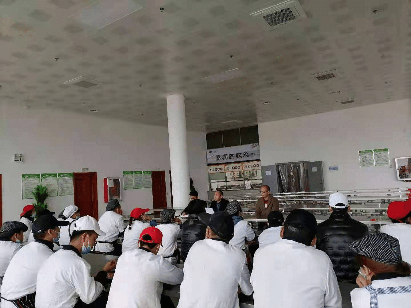 会前,膳食科首先检查了食堂商业食品安全管理情况,重点对环境卫生,餐饮具消毒保洁,食品及食品原材料的采购储存、加工、销售、留样,工作台账建立,索票索证等情况进行了检查,深入分析产生问题的原因,对发现的问题提出了具体的整改要求。