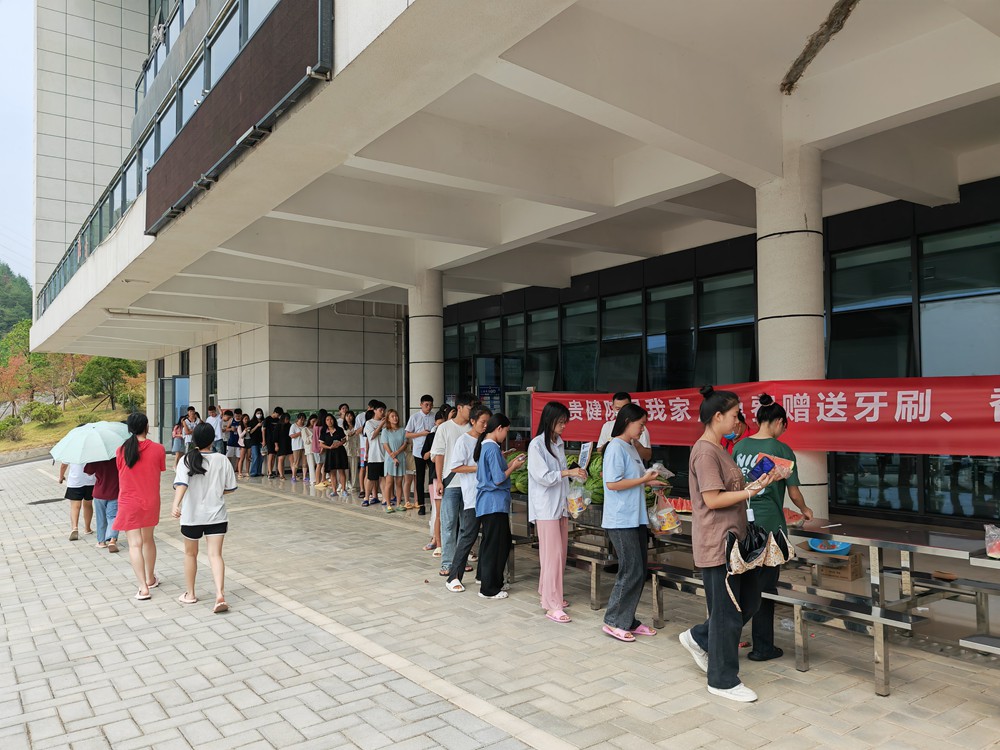 9月10日,双节之际,各后勤服务公司准备了5000个月饼、1000支牙刷、1000块香皂、1000斤西瓜、1440盒饮料、1440枚卤鸡蛋、1200瓶AD钙奶、800斤橘子分别在学生食堂、超市和健康服务中心等五个服务点进行发放,让在校过节学生倍感家的温暖。