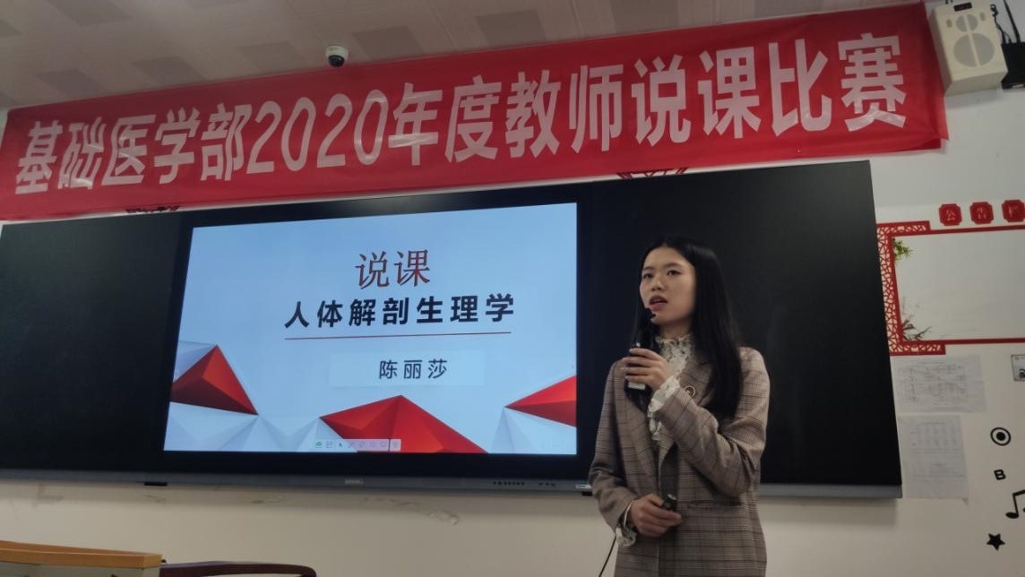 2020年11月18日,基础医学部副主任隋瑾带领教务科开展了“基础医学部2020年度教师说课比赛”活动,本次活动在教务处覃一彬老师细心评教中圆满完成。部门14名教师参与此次说课比赛,未参赛教师均列席比赛现场,虚心听取教学经验和方法。