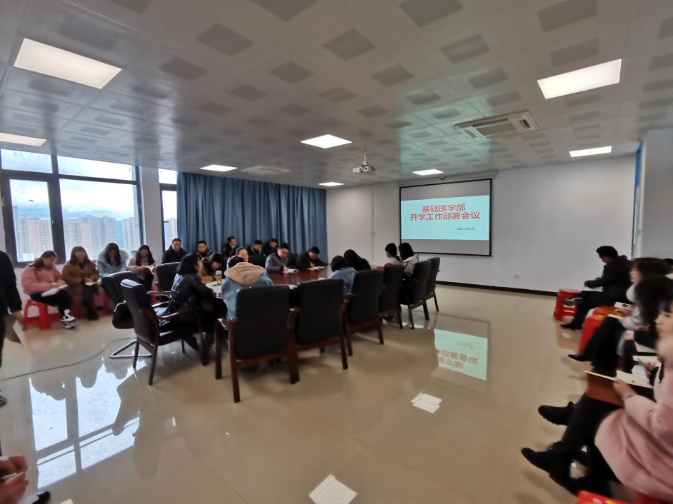 开学第一天,基础医学部全体教职工以崭新的面貌迎接新学期。上午隋瑾副主任召开党政联席会议,组织办公室、教务科、支部委员以及教研室相关负责人详细学习《院党委专题会关于2020-2021学年度第二学期开学工作的相关要求》。办公室、教务科及支部分别对2021年工作要点分别作出详细汇报讨论,隋瑾对开学工作进行强调部署。