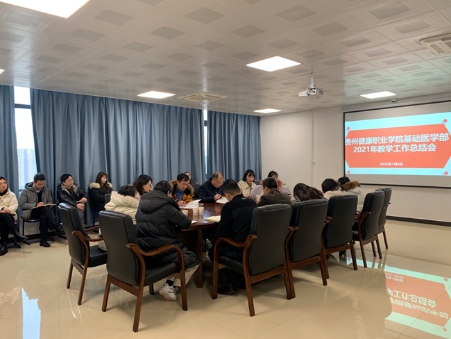 2022年1月6日下午14:30,贵州健康职业学院基础医学部召开了2021年年度教学工作总结会,学院党委委员、副院长唐康应邀出席会议,隋瑾副主任主持,全体教师参会。