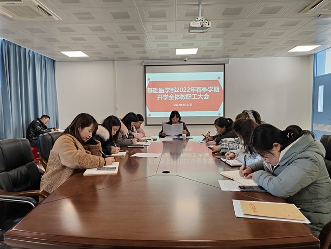 新学期、新征程、新目标、新起点,2月25日下午,基础医学部组织全体教师召开2022年春季学期开学工作会议。