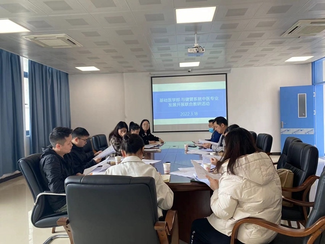 高校特色专业建设,是进一步优化高校专业设置、提升专业建设整体水平、提高人才培养质量和人才竞争力的重要手段, 也是广大高校在高等教育市场激烈竞争中求得生存和发展所必须要开展的一项重要教学改革内容。为我院中医学专业顺利稳步前进,为社会培养更多健康中医人才,2022年3月18日中午12:30基础医学部与健管系就中医学专业发展开展联合教研活动。