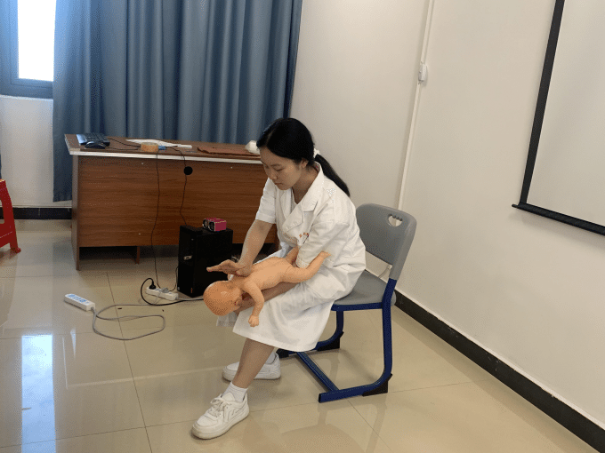 培训期间,李鑫老师通过PPT教学、实操演练以及一对一指导等多形式向同学们讲解心肺复苏和海姆立克急救法,剖析健康急救常见误区、如何进行健康急救措施等核心知识,同时告知同学们突发性意外伤害的现场急救、自救、互救的基础知识以及急救过程中要注意规范操作,体现人文关怀。