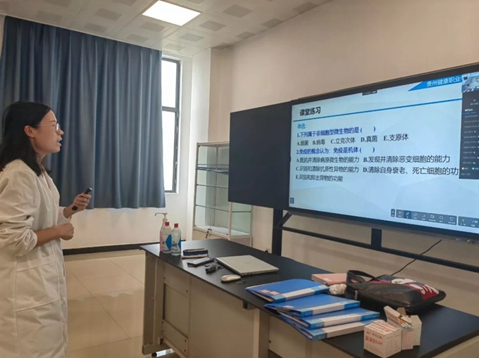 根据院党委关于2022级新生开学专题会议精神,为做到“停课不停学,停课不停教”,确保线上教学工作有序开展,部门制定了《贵州健康职业学院基础医学部2022级新生线上直播教学实施方案》,成立线上教学工作小组,坚持“全员参与”。由教务科完成基础医学实验楼无线网络搭建,实现楼层无线网络全覆盖,组织全体教师开展线上直播教学培训网络测试,确保线上教学万无一失,做到“只改变教学模式,不降低教学标准”。