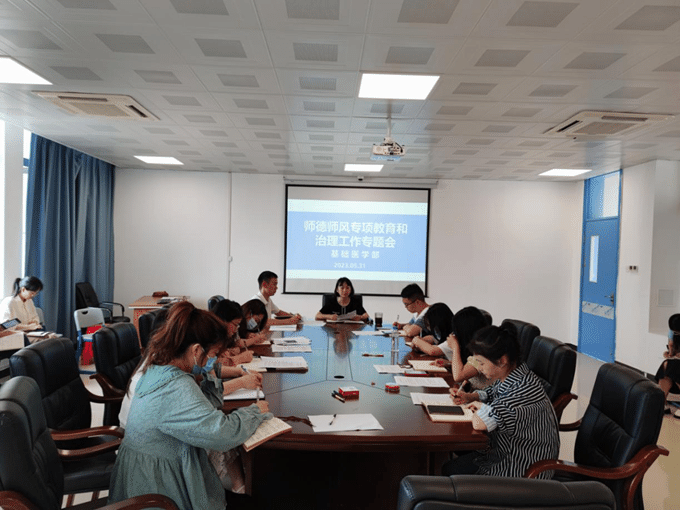 为进一步加强师德建设,认真学习贯彻习近平总书记关于师德师风的重要论述,建设一支师德高尚、业务精湛、结构合理、充满活力的高素质专业化创新型教师队伍,根据贵州健康职业学院师德师风专项教育和治理工作方案及师德师风专项教育和治理的工作提示(四)等文件精神。基础医学部于2023年5月31日14:30在10-1-502会议室开展师德师风专项教育和治理工作专题会。