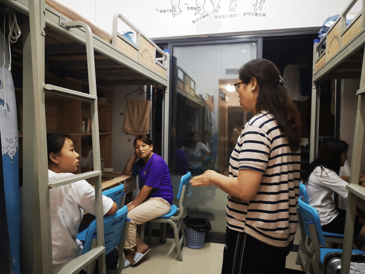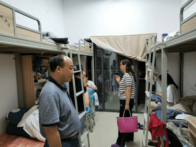 深入学生宿舍后,各班清点本班学生人数,摸清未返校学生人数及原因;对宿舍安全、卫生、纪律进行督促和强调;了解学生目前遇到的困难;其次对即将进行的军训进行动员。夏国文书记与李莹主任深入学生宿舍,对返校学生表达了亲切关怀,并对学生反映的问题与建议做了解答和记录。