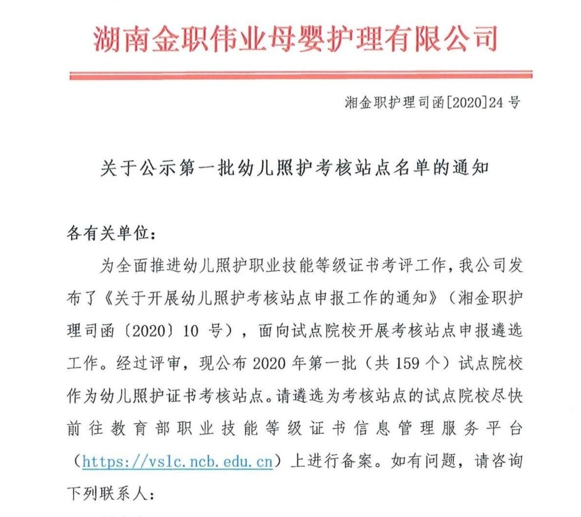 近日,国家“1+X”幼儿照护职业技能等级证书评价组织公布了第一批遴选通过的考核站点院校名单,我院成功获批国家“1+X”幼儿照护职业技能等级证书考核站点,第一批考核站点全国共159所院校通过遴选,贵州省共7所院校。