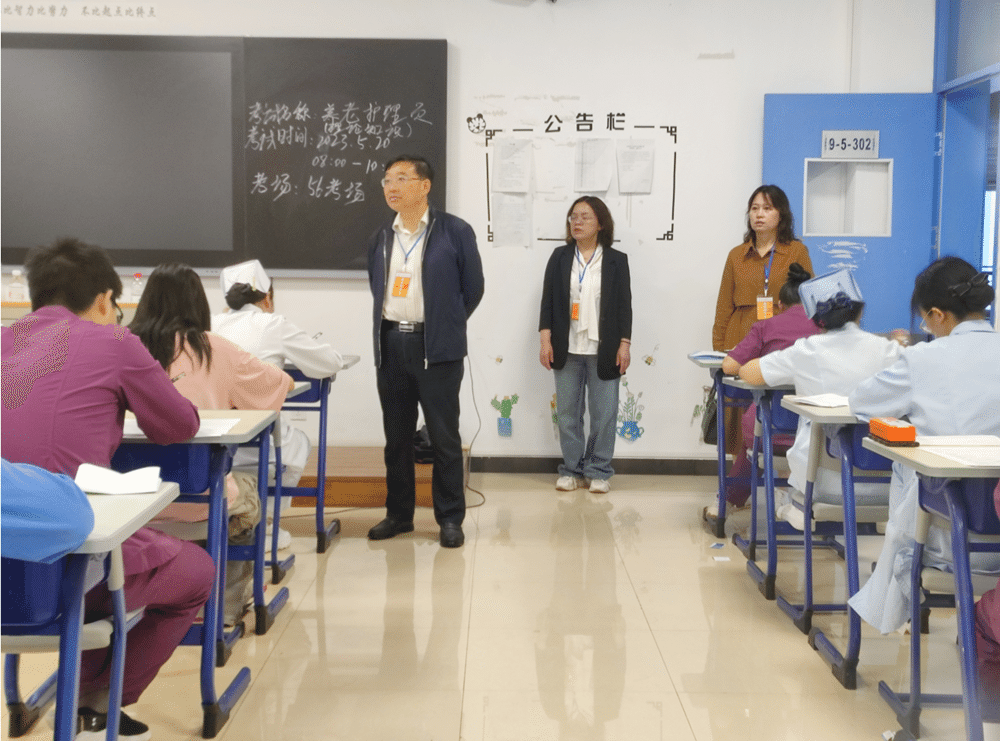 我院严格按照职业技能等级评价规范流程开展评价,党委委员、副院长黄国刚,党委委员、护理系主任刘艳到考试现场指导检查,在继续教育部、监察室、护理系相关负责人的陪同下对整个考试过程进行了监督指导,对考试组织的有序性给予了充分肯定。