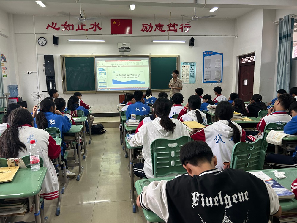 此次培训主要围绕学生青春期生理心理变化,如何应对和释放压力进行讲解,培训对象是该校九年级全体学生。培训课上,培训老师生动形象地讲解、有趣地互动形式,使学生课堂参与积极性高,课堂的氛围融洽、活跃。张林老师抛出话题“打开心窗,说说心里话”后,同学们踊跃发言,纷纷诉说着自己进入青春期后的感想,随后根据同学们提出的困惑一一给予解答,与同学们分享如何有效缓解学习压力的方法。杨思昊老师给出“雨中人”绘画主题,让学生现场画图互动参与,培训老师通过分析、讲解同学们图画的内容,向同学们解答青春期情绪特征的原因和应对方式,帮助同学们在遇到压力的情况下学会自我疏导或是向身边的老师、同学寻求帮助。