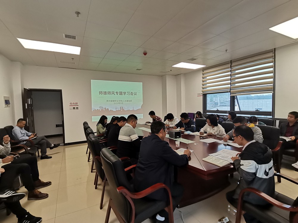 为了提高教职工的政治理论素养,有效推进师德师风建设,9月16日下午,人文基础部党支部全体党员、发展对象、入党积极分子和专职教师共24人,在科技楼708会议室开展政治理论学习活动。学院党委副书记李黔军以普通党员身份参加,会议由人文基础部党支部书记、主任刘泽坤主持。