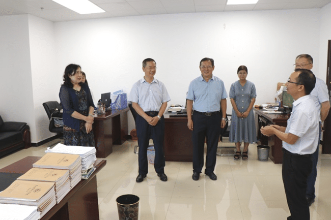 这是学校领导慰问全校教师的第一站。在人文基础部办公室,黄霞书记与在场的每一位教师亲切握手,向教师们送上诚挚的节日祝福。我部党支部书记、主任刘泽坤向校领导一行汇报了人文基础部课程建设、教学管理等有关工作。她详细询问了部门的师资队伍建设、教学科研工作情况,满怀关切的了解我部教师学习、工作和生活感想,并向我部教师在此次教师节表彰大会上获得的佳绩表示祝贺,对教师们辛勤的工作给予了肯定和赞赏。