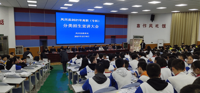 结束正安县的招生宣传工作后,工作组马不停蹄即刻赶往凤冈县,下午15时,宣传组到达凤冈县凤冈二中,参加由凤冈县教育局在该校主办的分类招生宣讲大会,有一千余名高三学生参加此次招生宣讲大会。
