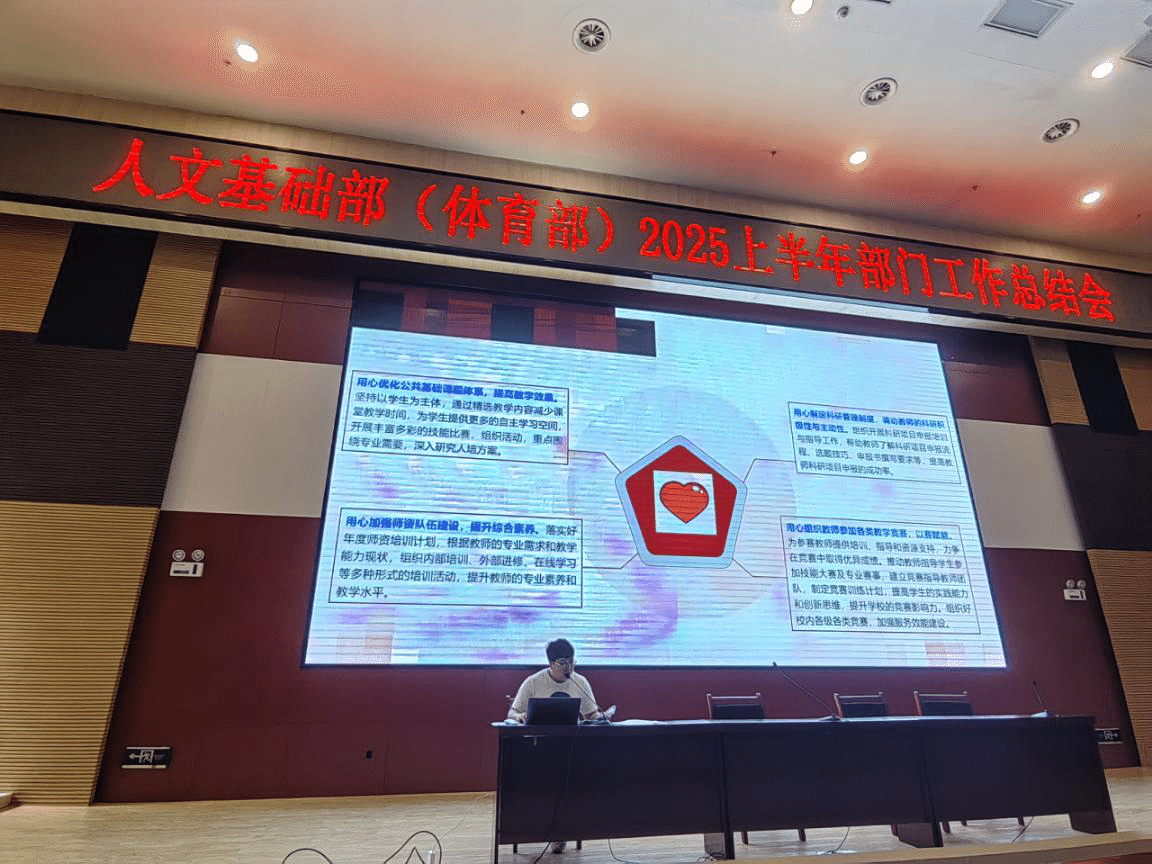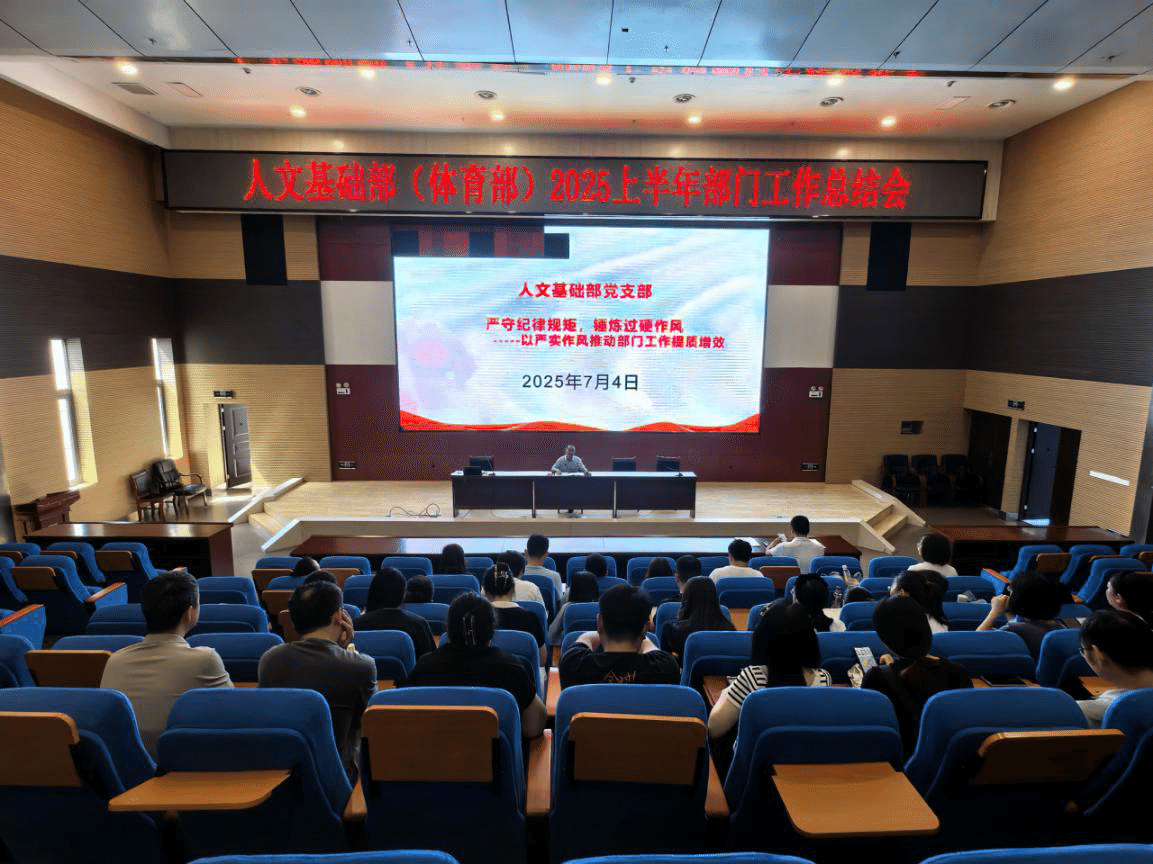 为系统总结上半年工作成效,科学谋划下半年发展路径,7月4日上午,人文基础部(体育部)在学术报告厅召开2025年上半年工作总结会议。人文基础部(体育部)主任刘泽坤主持会议,全体专兼职教师参会,共同回顾成果、凝聚共识,为部门高质量发展注入新动能。