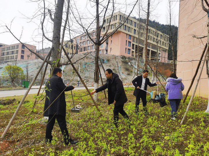 会议讨论环节后,以学雷锋纪念日为契机,该支部组织了一次“美丽校园志愿服务行”活动,全体党员以饱满的热情投入到清洁校园的行动中。经过简单分工,对烟头、果皮、塑料袋、废弃物等垃圾进行地毯式清理。校园很美丽,卫生靠大家。在飘扬的党旗照映下,校园风景显得更加美丽。