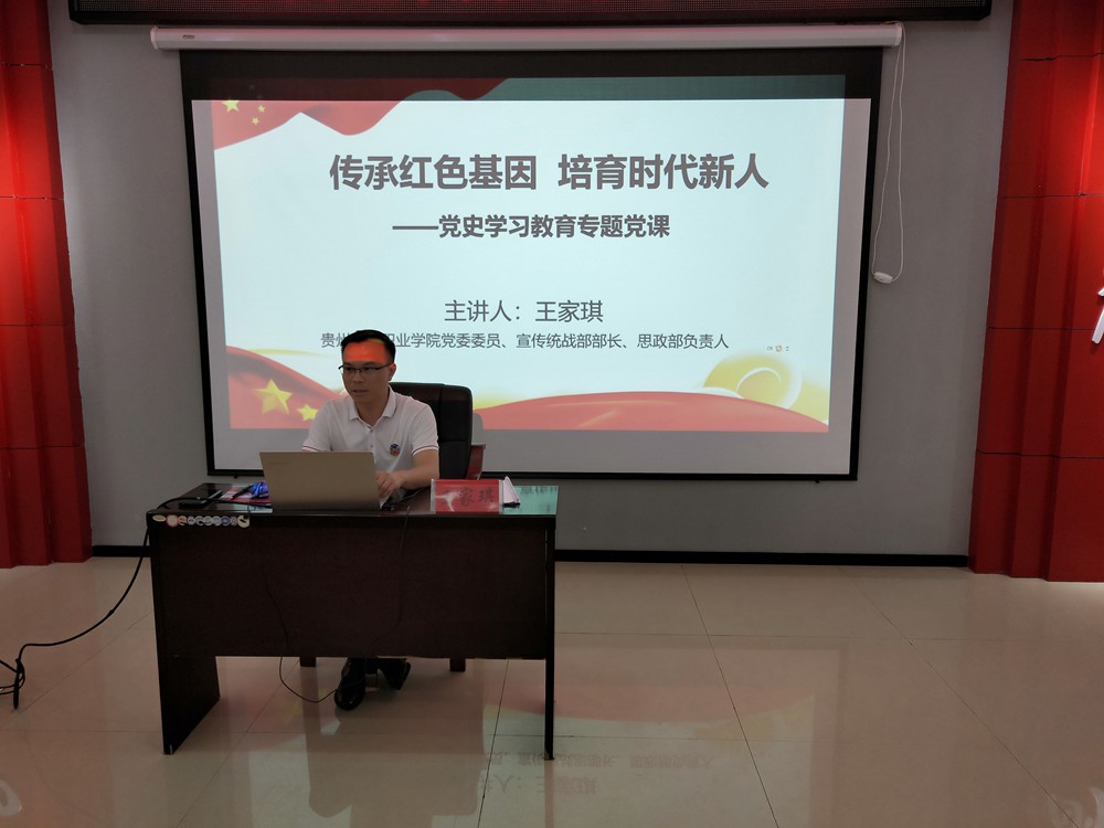 王家琪以《传承红色基因 培育时代新人》为题,围绕在党史学习教育中提升理论素养和抓好青年学生党史学习教育落实立德树人根本任务两个方面进行了讲解。