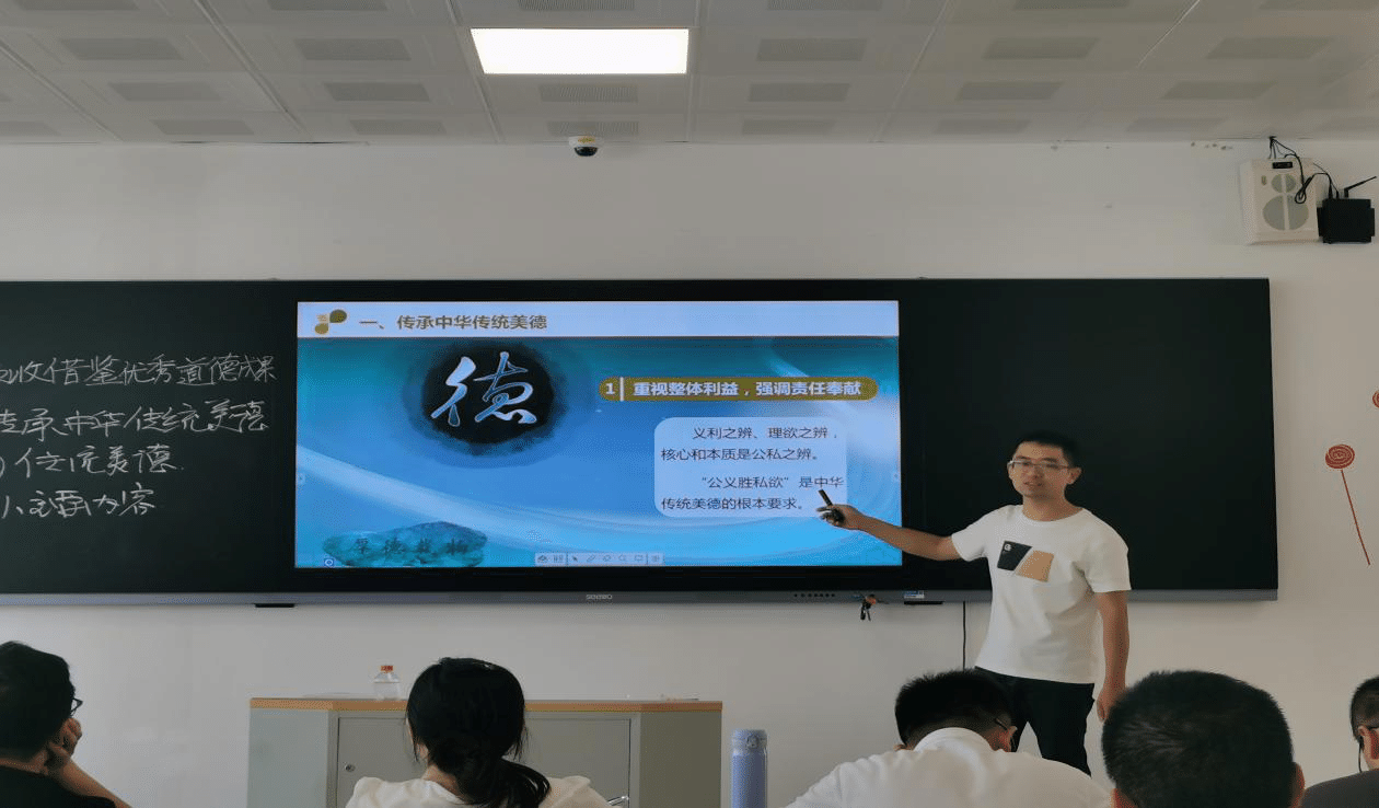 “教”字当头,三尺讲台亮初心。教育是国之大计,党之大计。立德树人者,要时刻“心里装着国家和民族”,对“培养什么人、怎样培养人、为谁培养人”了然于胸,树立对马克思主义的信仰、对中国特色社会主义的信念、对中华民族伟大复兴中国梦的信心。为确保思政教师严守“六要”标准,守牢思政课程主阵地,思政部于9月6日组织了对陈吉民等5位新进老师的试讲活动。在试讲活动中,由课程组长、“教学新秀”组成的评审小组,分别从课件制作、教学设计、教师教态、教学效果、课堂掌控等多方面向新教师提出了意见和建议,帮助新进教师更好地成长。致力于创新思政课的政治性、可读性、亲和性和趣味性,确保思政育人主课程没有一分松动。