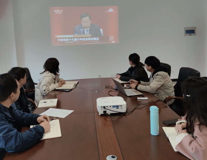 11月12日上午,思政部组织全体教师集中收看中共中央举行的介绍党的十九届六中全会精神发布会直播。