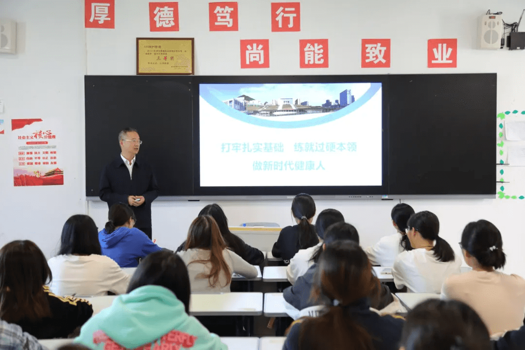 课上,吴国才指出,高职高专是技能人才的重要培养基地,在当前健康行业蓬勃发展之际,学校倾心为同学们搭建理论与实践相结合的优质平台,是同学们迈向健康事业的理想起点。同学们选择这里,就是选择成为健康领域的坚实力量。要充分利用课堂与图书馆资源,自觉加强理论知识的学习,不断夯实理论基础。要积极参与实践技能操作,自觉加强技术技能磨炼,不断提高技能水平。要积极参与社团和志愿服务,主动与同学合作交流,不断提升综合素养。要养成健康生活习惯和积极心态,坚守初心,坚守底线,锤炼心性,不断提升品德修养。