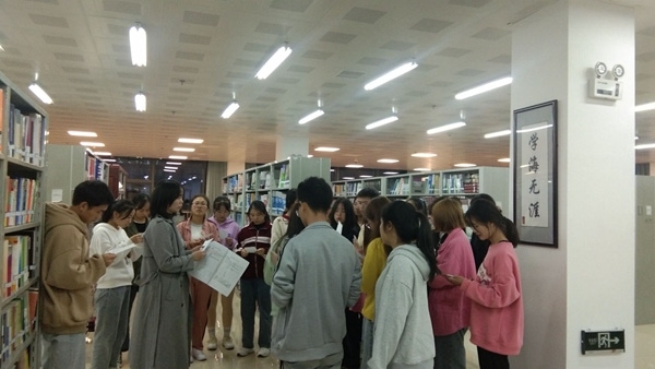 培训采用理论与实践相结合的模式进行。杨孝美首先对图书馆馆情、工作内容、服务主体、图书构成要素、馆藏布局、开放时间、规章制度等方面进行了详细介绍,让新生学生馆员对图书馆有较为全面的了解,认识到图书馆工作的重要性;随后又对学生馆员队伍构成结构、主要工作内容及常见问题、如何转为勤工助学馆员、考核指标和享受待遇等方面进行了逐一讲解,并对新生馆员提问进行了解答,使新生馆员对学生馆员队伍及工作内容有了更清晰的认识;最后为了加深学习印象,杨孝美带领了新生馆员到图书馆各楼层熟悉馆藏布局,并在书库内对图书排架、借阅等工作进行示范,指导新生馆员在现场进行实践操作。