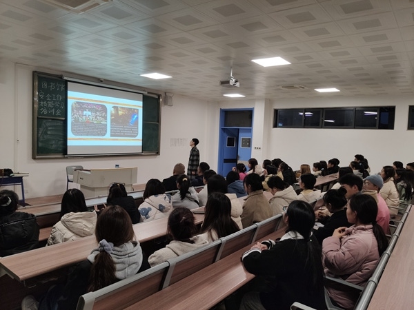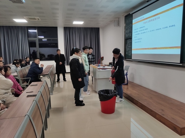此次培训采取理论与实践相结合的模式。朱凯先就身边的火灾案例、火灾类型及起因、预防火灾措施、火灾处理方法,消防器材使用等内容进行了详细讲解,使学生馆员对消防安全知识有了全面认识。同时为使学生更好地掌握灭火器使用方法,讲解完毕后朱凯现场演示了干粉灭火器的使用步骤,并对学生馆员使用灭火器进行了逐一指导,纠正了学生在使用过程中的错误动作,进一步加深了学生的学习印象。随后杨正乾结合图书馆实际,对图书馆消防安全工作提出了四点建议:一是全体人员在思想上要高度重视,要充分认识到消防安全工作的重要性;二是要熟练掌握消防安全技能以及图书馆逃生疏散路线,一旦遇见突发事件要立即有序地组织馆内人员按疏散路线逃生;三是发现堆满纸屑的垃圾桶及时清理更换,杜绝因烟头点燃垃圾引发的消防安全问题;四是每位同学下班前要仔细检查图书馆每个角落,确保不留安全隐患。最后杨孝美作总结。她强调,图书馆作为学院一级防火部门和师生活动场所,图书馆安全关乎到学院每位师生的生命、财产安全,全体学生馆员下去以后要再学习、再梳理、再回顾、再总结,确保将所学融入到图书馆岗位工作以及个人生活当中,坚决不留任何人为安全隐患,杜绝发生一切人为安全事故,共同为我院构筑好师生生命安全防线和底线。