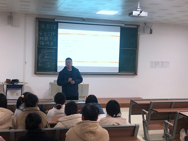 12月4日,图书馆在8-1-402教室召开消防安全知识技能学习培训会,本次培训会邀请到保卫处消防治安科工作员罗海、杨正乾参会指导,兴隆物业公司驻我院专职消防员朱凯主讲,图书馆学生馆员指导教师杨孝美、安全工作联络员孙佳兴以及46名学生馆员参加。