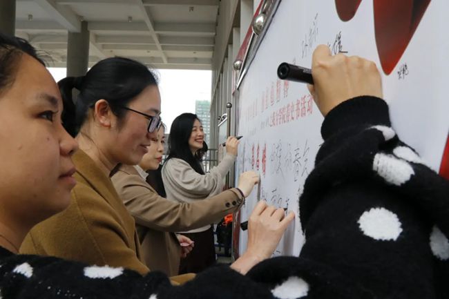 开展“我为党送祝福”活动。发动师生抒发爱党爱国爱社会主义的情怀,展示积极向上、健康阳光的精神风貌。在活动现场,师生纷纷将对党的真挚情怀凝于笔端,认真为建党100周年书写心中祝福和寄语。