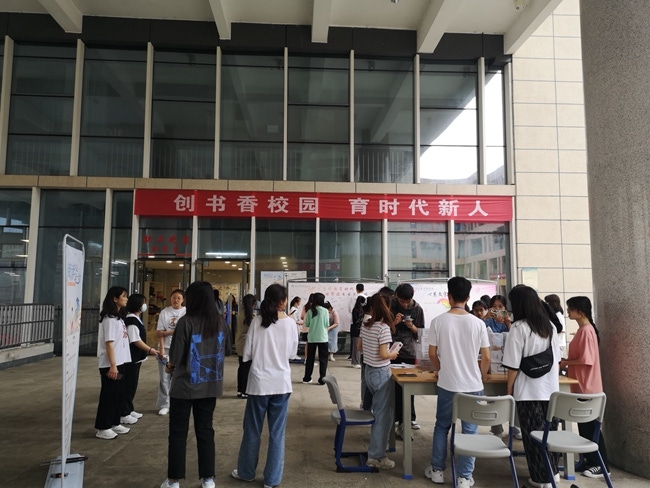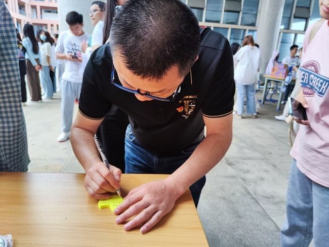 在活动现场,工作人员对参与活动的师生发放便利贴,一个个行云流水,落笔如云烟的话语便印在了小小的便利贴上,引导师生将内容积极向上的寄语张贴在展板上,并在签名墙上签字,同时对积极参加活动的师生现场发放小礼品。