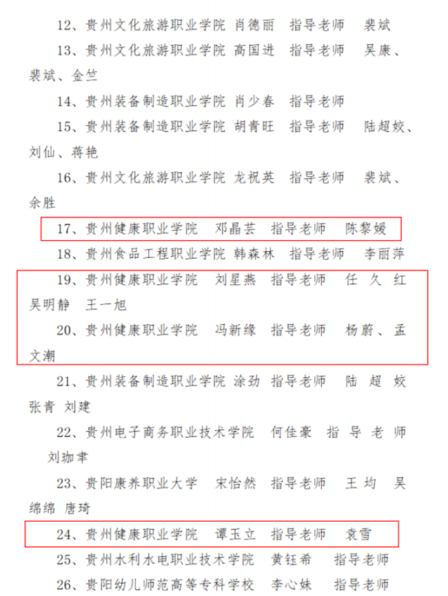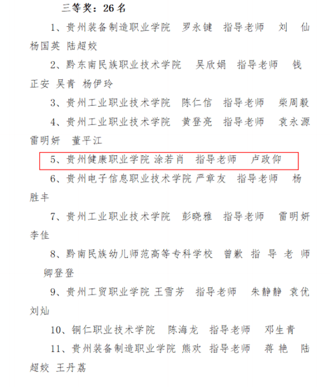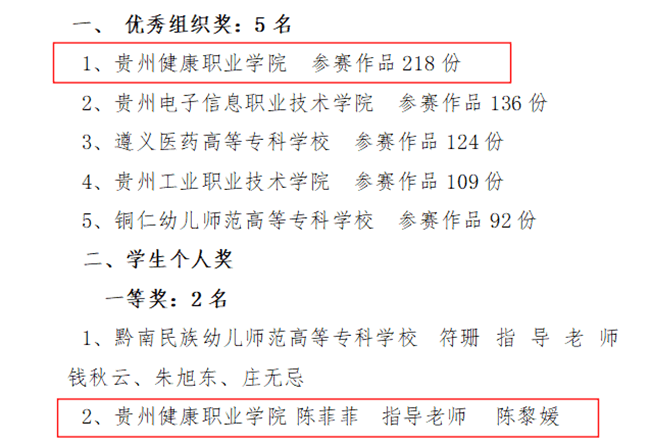 由贵州省图书馆学会主办的2024年贵州省高职院校“软件通杯”简历设计技能大赛于12月圆满落下帷幕。我院陈菲菲同学荣获一等奖,刘欣煜同学荣获二等奖,涂若肖、邓晶芸、刘星燕、冯星缘、谭玉立五位同学荣获三等奖,我院陈黎媛、卢政仰、任久红、吴明静、王一旭、杨蔚、孟文潮、袁雪八位老师荣获优秀指导老师奖,学校荣获优秀组织奖。