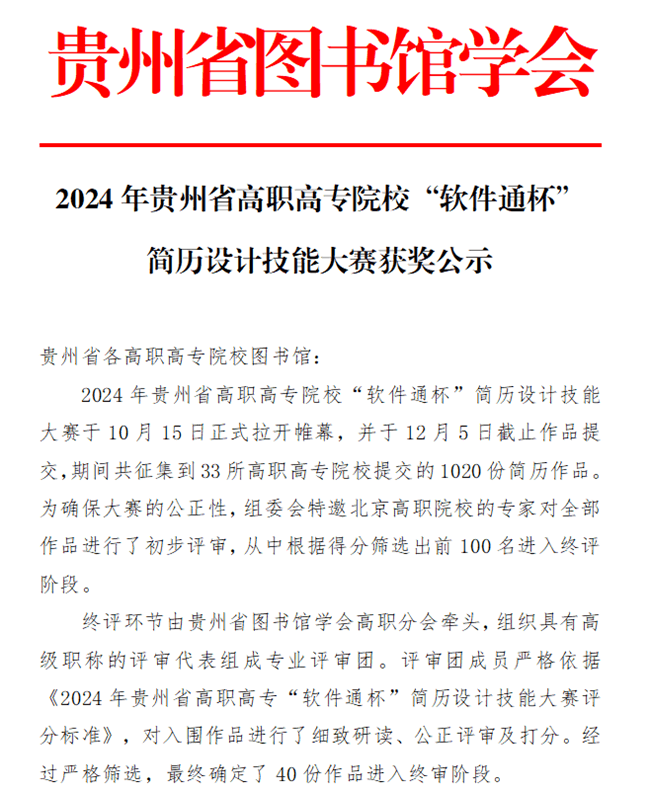【喜报】我校在2024年贵州省高职院校“软件通杯”简历设计技能大赛中喜获佳绩