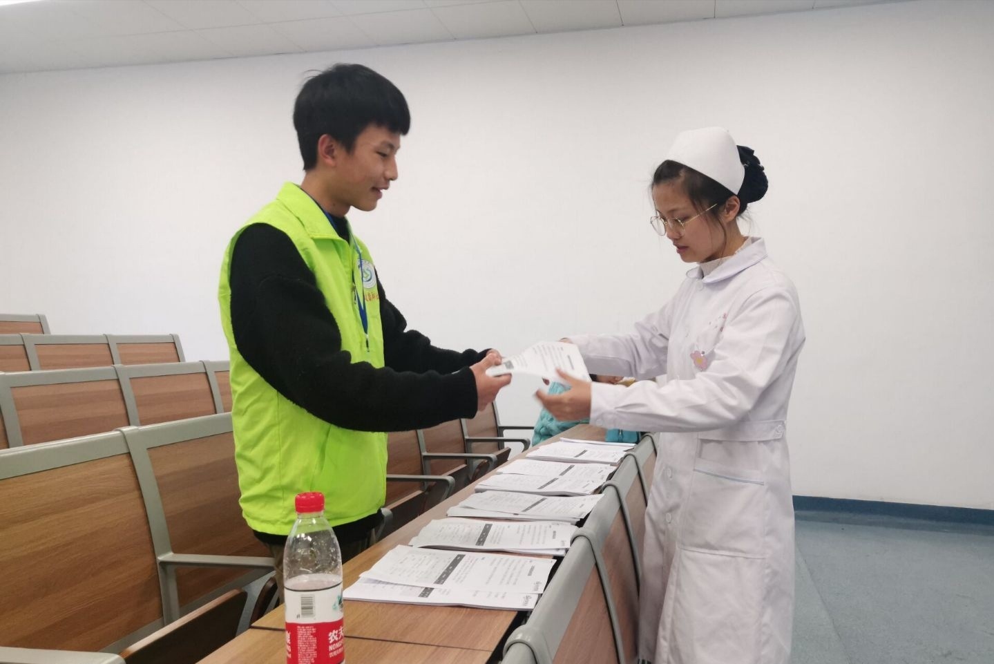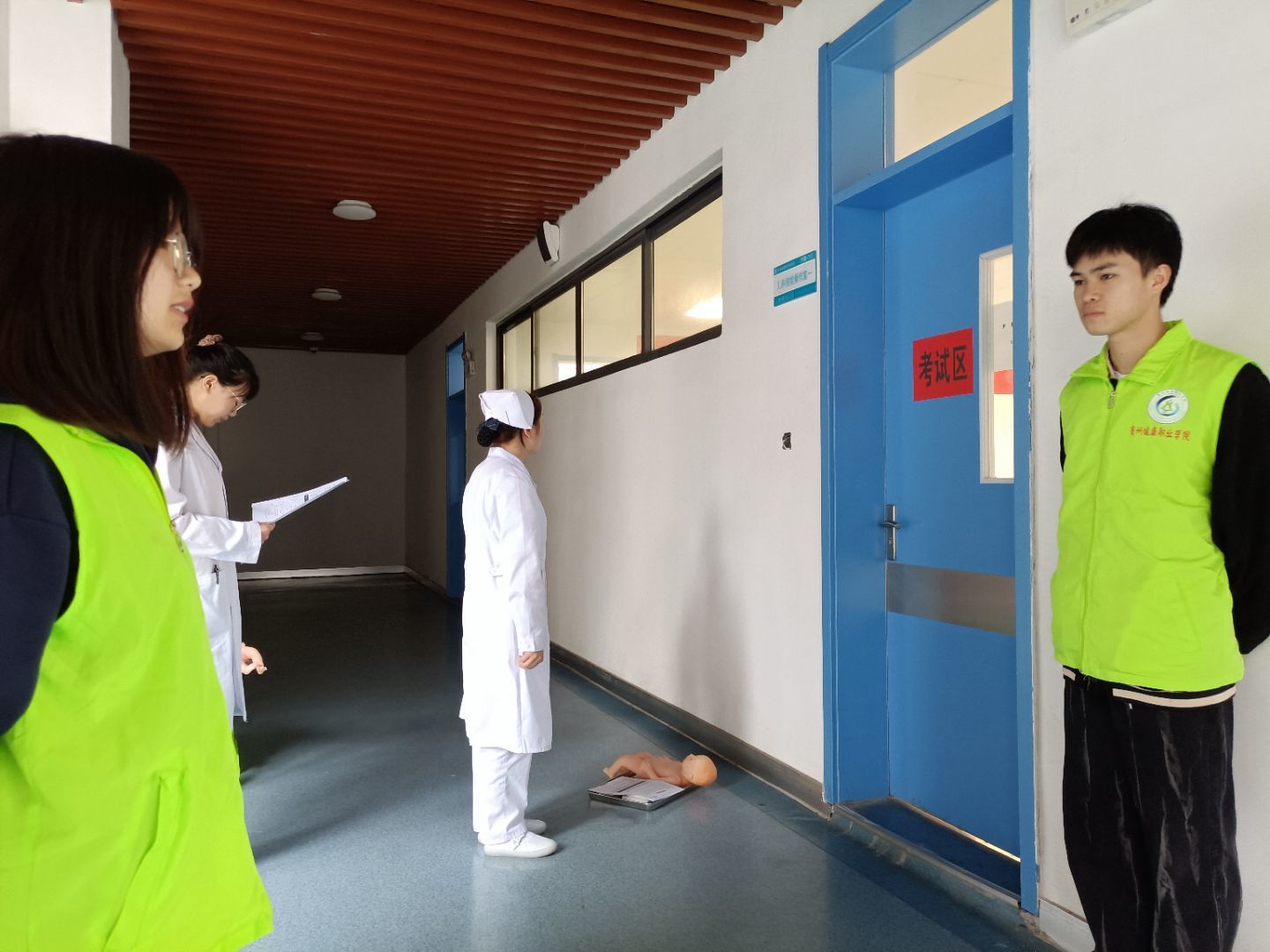 2021年4月23日,贵州省1+X幼儿照护实操考试在我院进行,为进一步增强我院广大青年学生的志愿意识、责任意识和奉献意识,贵州健康职业学院青年志愿者协会招募7名学生志愿者配合学院为本次考试提供秩序维护、考生资料分类等志愿服务。