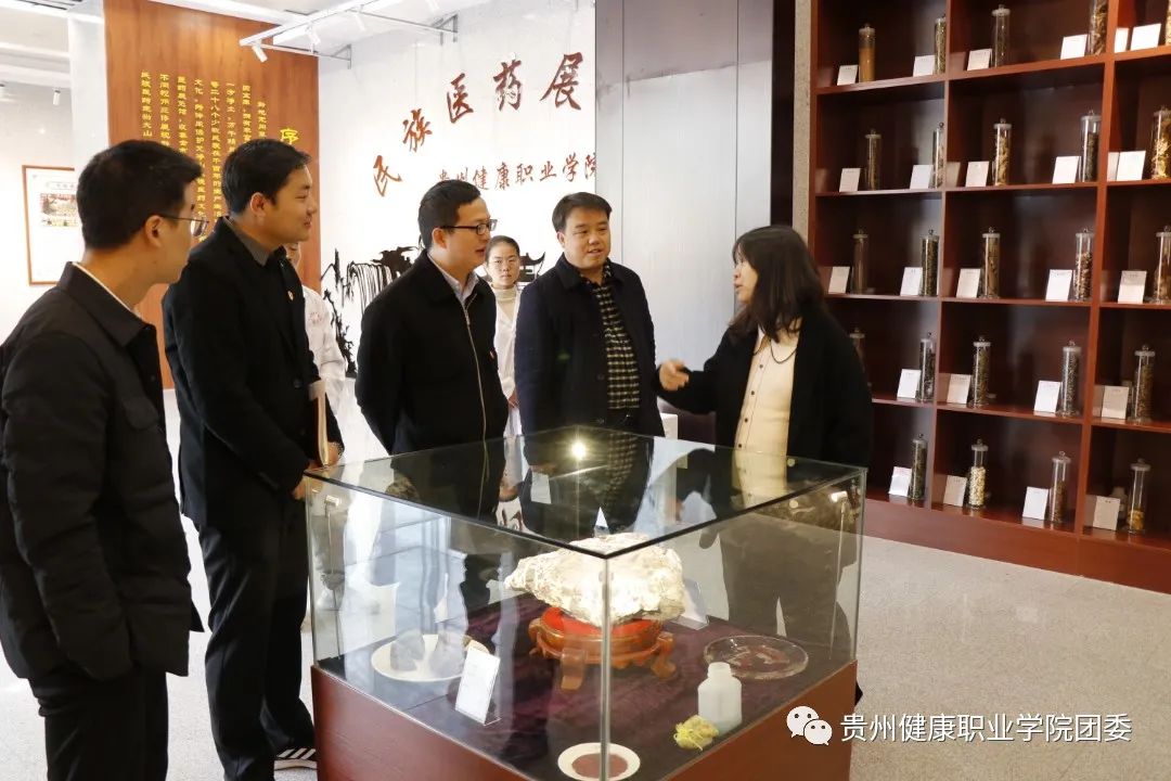 刘艳一行先后参观了我院民族医药展览馆、思想政治教育基地(铜仁市学校思想政治教育示范基地)、大学生活动中心,对我院致力于提升学生实践能力与创新能力,打造独具民族特色的民族医药展览馆,着力于团员青年思想政治教育,创新建设思政基地,坚持强“三性”,建成大学生活动中心等有效的特色做法,表示十分赞许。