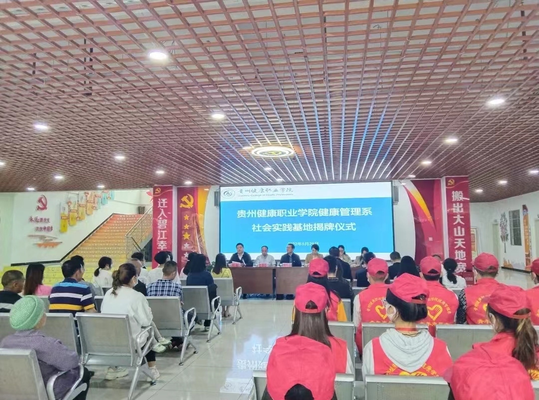 5月29日,贵州健康职业学院健康管理系社会实践基地揭牌仪式暨健康管理系铜心圆青年志愿服务队五月志愿服务活动在正光街道打角冲社区举行。贵州健康职业学院党委副书记李黔军,碧江区区委常委、宣传部长、统战部长杨婧,健康管理系党总支书记夏国文,健康管理系主任李莹,正光街道党工委书记杨魁出席活动。