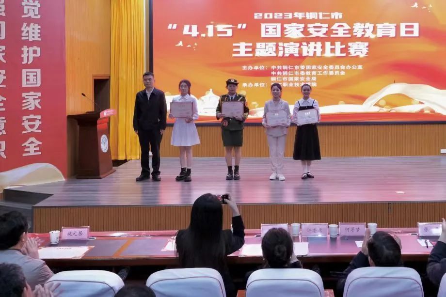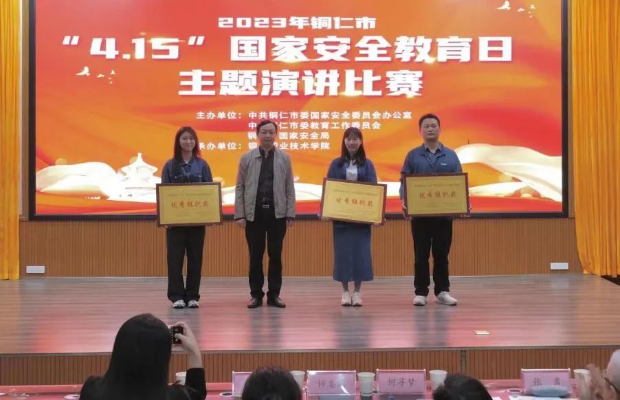 4月12日,我院在2023年铜仁市“4·15”国家安全教育日主题演讲比赛中喜获佳绩,奖项数量和质量均在全市各参赛单位中居首位。其中:学院获“优秀组织奖”集体荣誉;学生马丽丹荣获一等奖,姚亚芬、黄希男荣获二等奖个人荣誉。