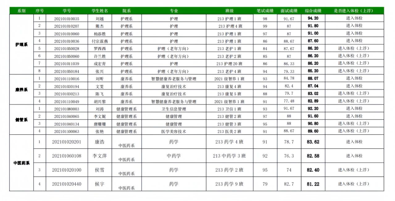 贵州健康职业学院2024年西部计划招募考试综合成绩及进入体检环节名单