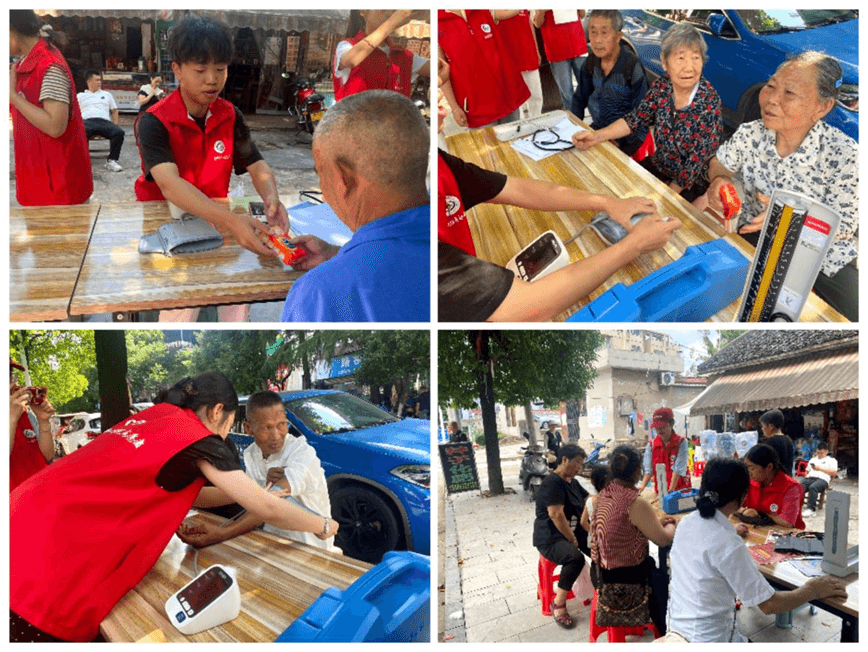 7月5日,贵州健康职业学院健康学子“乡”约行志愿服务队在碧江区川硐镇,开展“晨曦暖乡心,青春绘健康”志愿服务活动。志愿者在赶集天,为乡亲们做健康检查、宣传健康知识,与乡亲们共话“金乡邻、银亲眷;邻居好,赛金宝”等关于和睦、互助、诚信的故事。