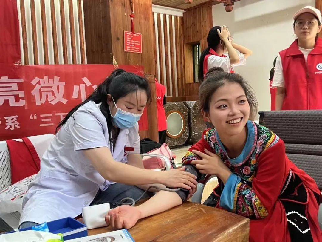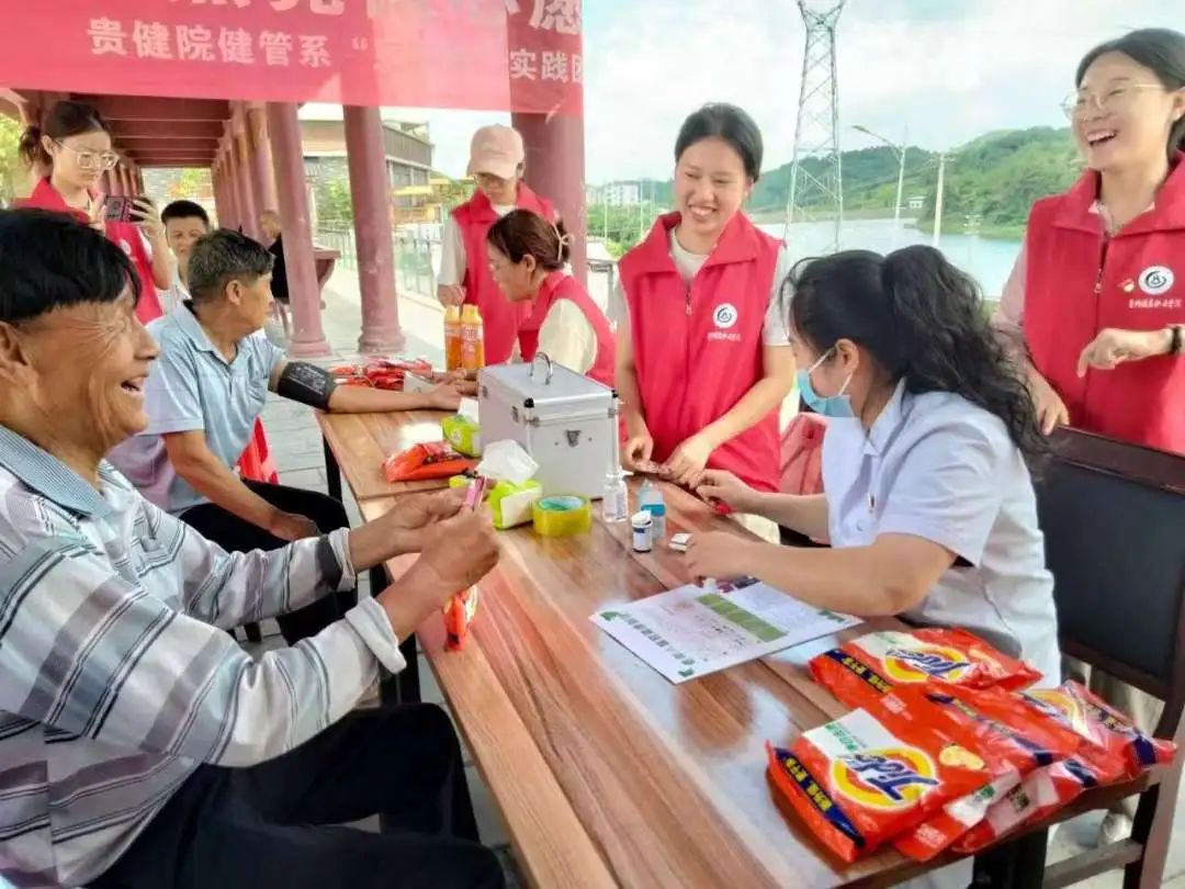 7月4日下午,贵州健康职业学院“医伴下乡—临时家人关爱行”志愿服务队到达铜仁市千里苗疆第一域——中国·苗王城为当地游客、居民、工作人员等开展义诊活动,并宣讲健康、禁毒、防艾、反诈等生活常识,为乡村地区送去健康与关爱,让青春之花在乡村大地上绚丽绽放。
