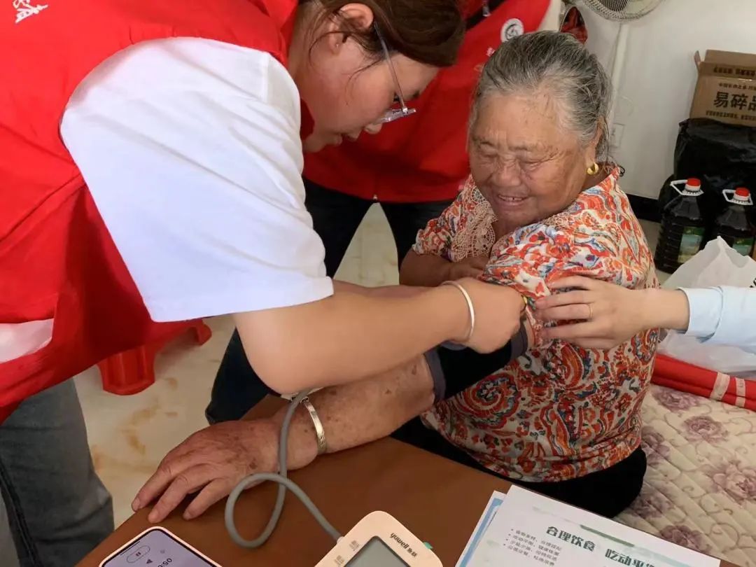 7月4日上午,贵州健康职业学院“医伴下乡—临时家人关爱行”志愿服务队到达铜仁市大兴街道兴园社区为当地居民开展血糖、血压、心率等义务健康检测咨询活动,向群众科普高血压的危害,并为他们普及如何预防和治疗。