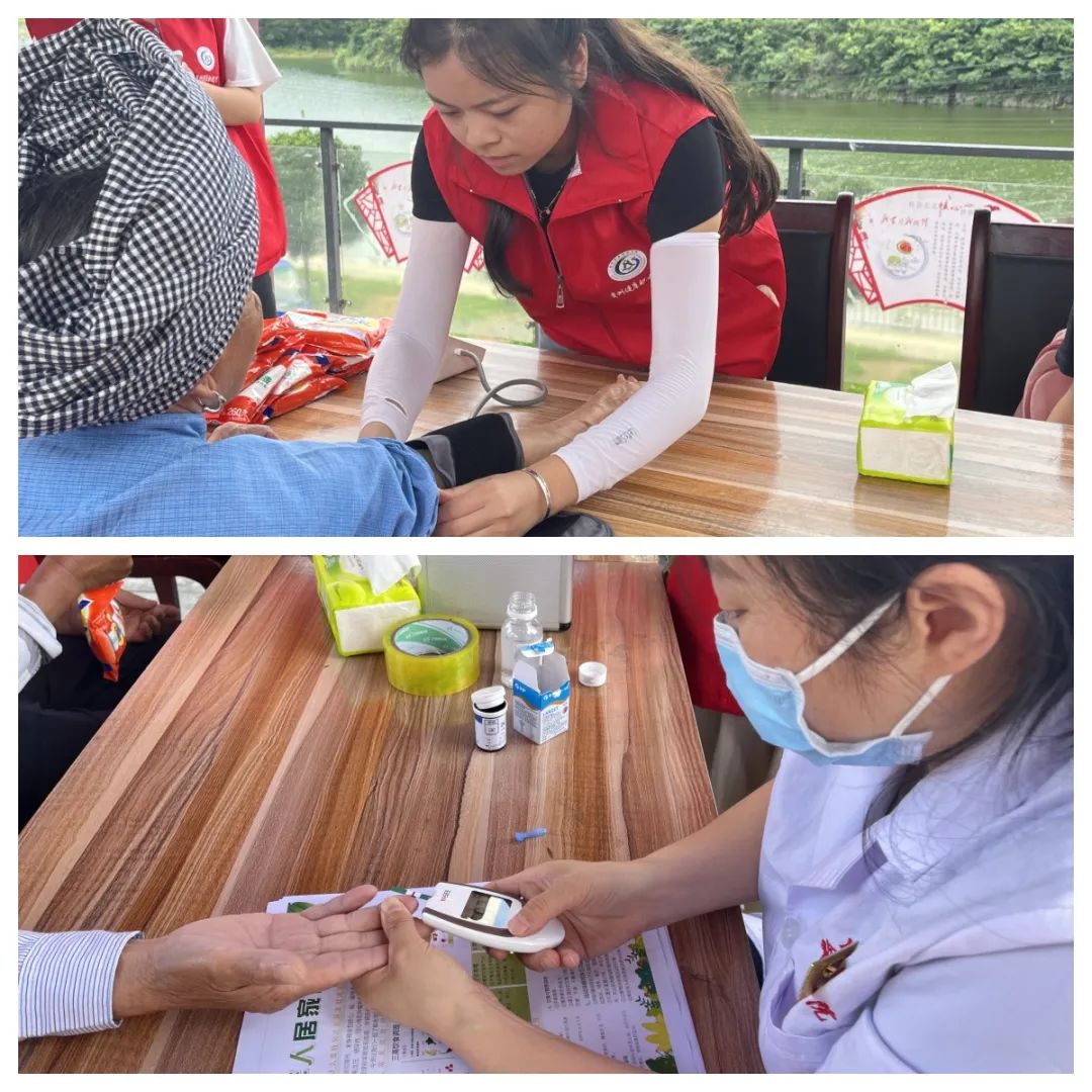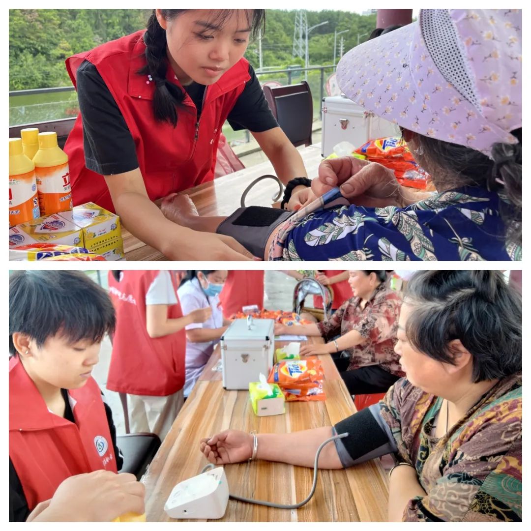 7月2日下午,贵州健康职业学院“乐在敬老,健康之行”志愿服务队前往铜仁市松桃县大兴镇兴园社区,社区主任的协助下开展了义诊活动,为社区里的居民、环卫工人、老党员进行免费的血糖、血压的测量并宣传健康实用小知识。