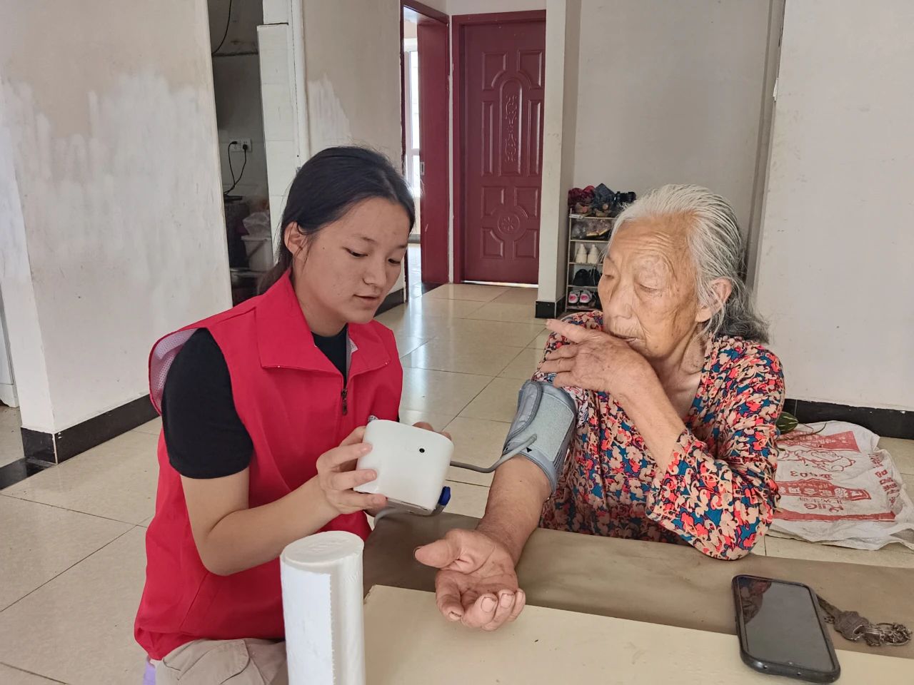 7月4日上午,贵州健康职业学院“赤心向党”志愿服务队踏入正光街道广场,今日我们分为两队,一队在广场中央,为长者们提供血压检测;另一队则走街串巷,家家户户上门去拜访社区家中老人把温暖送上门。