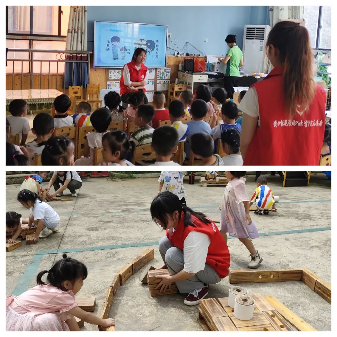 7月4日下午,贵州健康职业学院“青春助铜行”志愿服务队前往铜仁市碧江区矮屯社区第二十一幼儿园开展关心儿童活动。志愿者们通过图文并茂的方式向小朋友们讲解心理健康相关知识,并和小朋友们开展户外游戏互动。